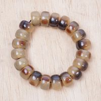 Eco-Friendly Recycled Glass Beaded Stretch Bracelet in Brown 'Anigye Splendor' Item ID: 2671804338