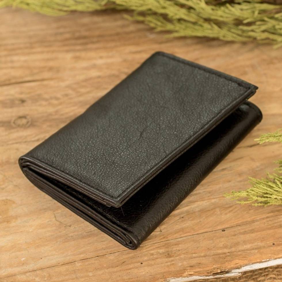 Eco-Friendly Recycled Leather Men's Trifold Wallet in Black 'Elegant Organization' Item ID: 2671769136