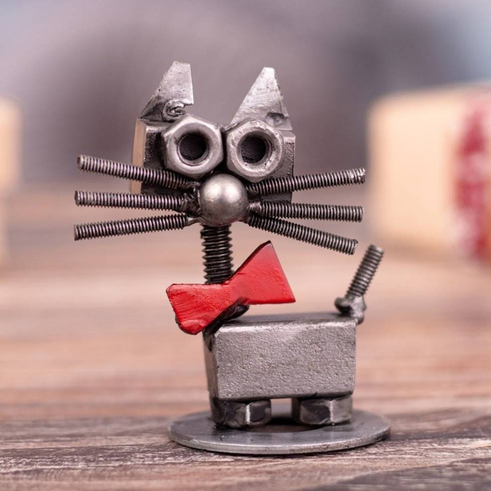 Eco-Friendly Recycled Metal Figurine of a Cat with a Bow Tie 'Bow Tie Cat' Item ID: 2671399996