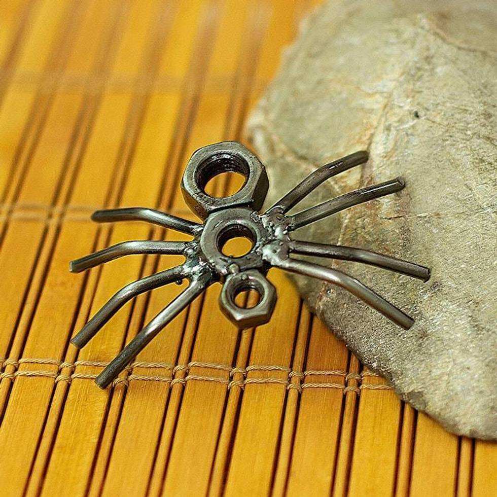 Eco-Friendly Recycled Metal Figurine with Spider Motif 'Curious Spider' Item ID: 2676647176
