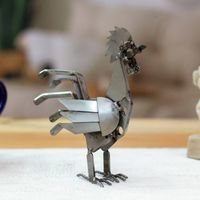 Eco-Friendly Recycled Metal Rooster Sculpture from Mexico 'Rooster Chance' Item ID: 2676647233
