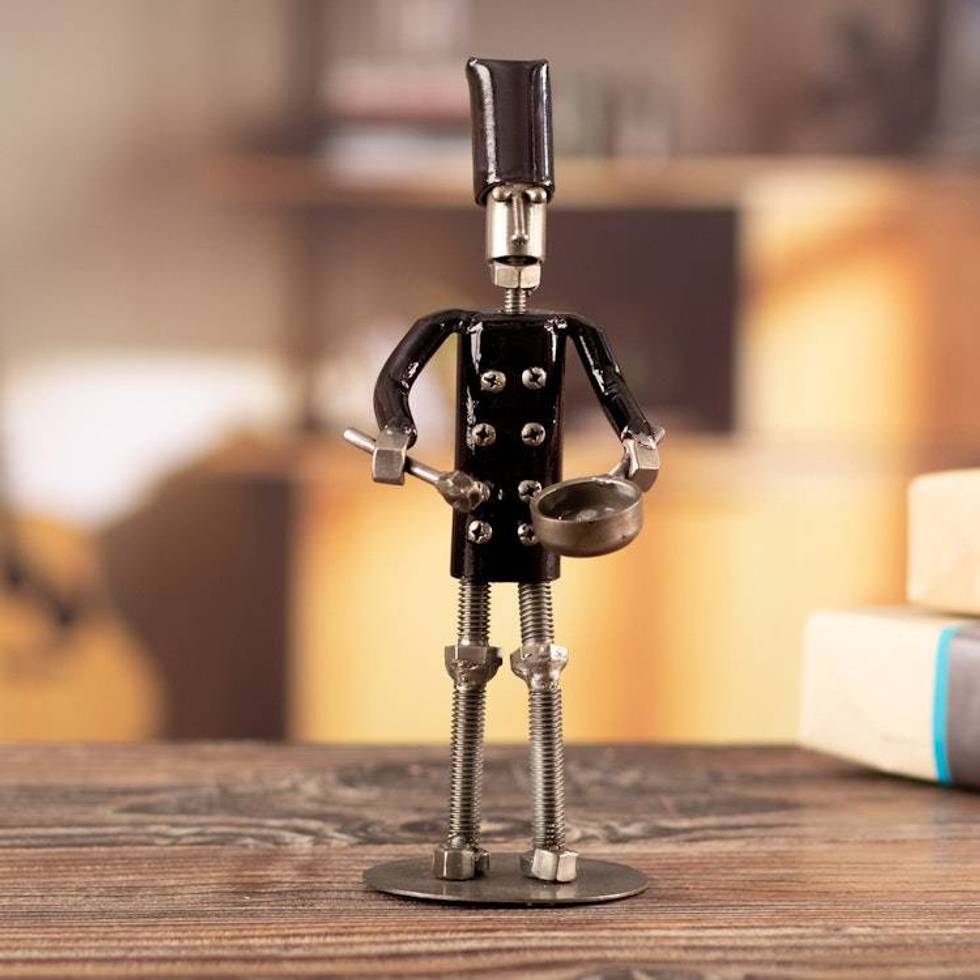 Eco-Friendly Recycled Metal Sculpture of Chef Made in Peru 'Metallic Flavors' Item ID: 2676641881
