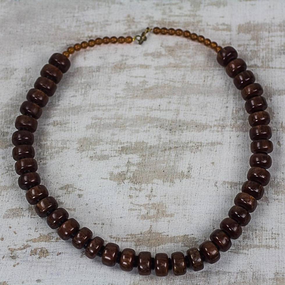 Eco Friendly Recycled Plastic Dark Brown Beaded Necklace 'Peaceful Calm' Item ID: 2671805640
