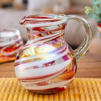 Eco-Friendly Red Handblown Recycled Glass Pitcher 'Great Enchantment' Item ID: 2671640411