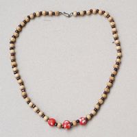 Eco-Friendly Sese Wood and Recycled Glass Beaded Necklace 'Fearless Red' Item ID: 2671804092