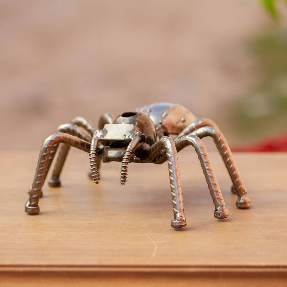 Eco-Friendly Upcycled Metal Spider Sculpture from Mexico 'Rustic Tarantula' Item ID: 2669932202