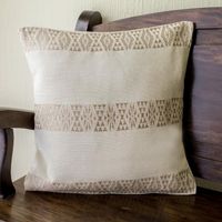 Ecru Hand Woven Cotton Cushion Cover 'Mountains and Valleys in Ecru' Item ID: 2671776887