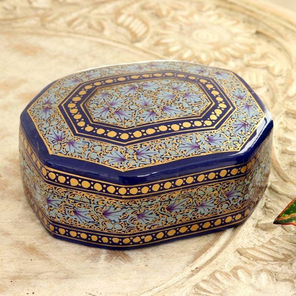 Elegant Hand Painted Blue and Gold Papier Mache Box 'Kashmir Royal' Item ID: 2676663769
