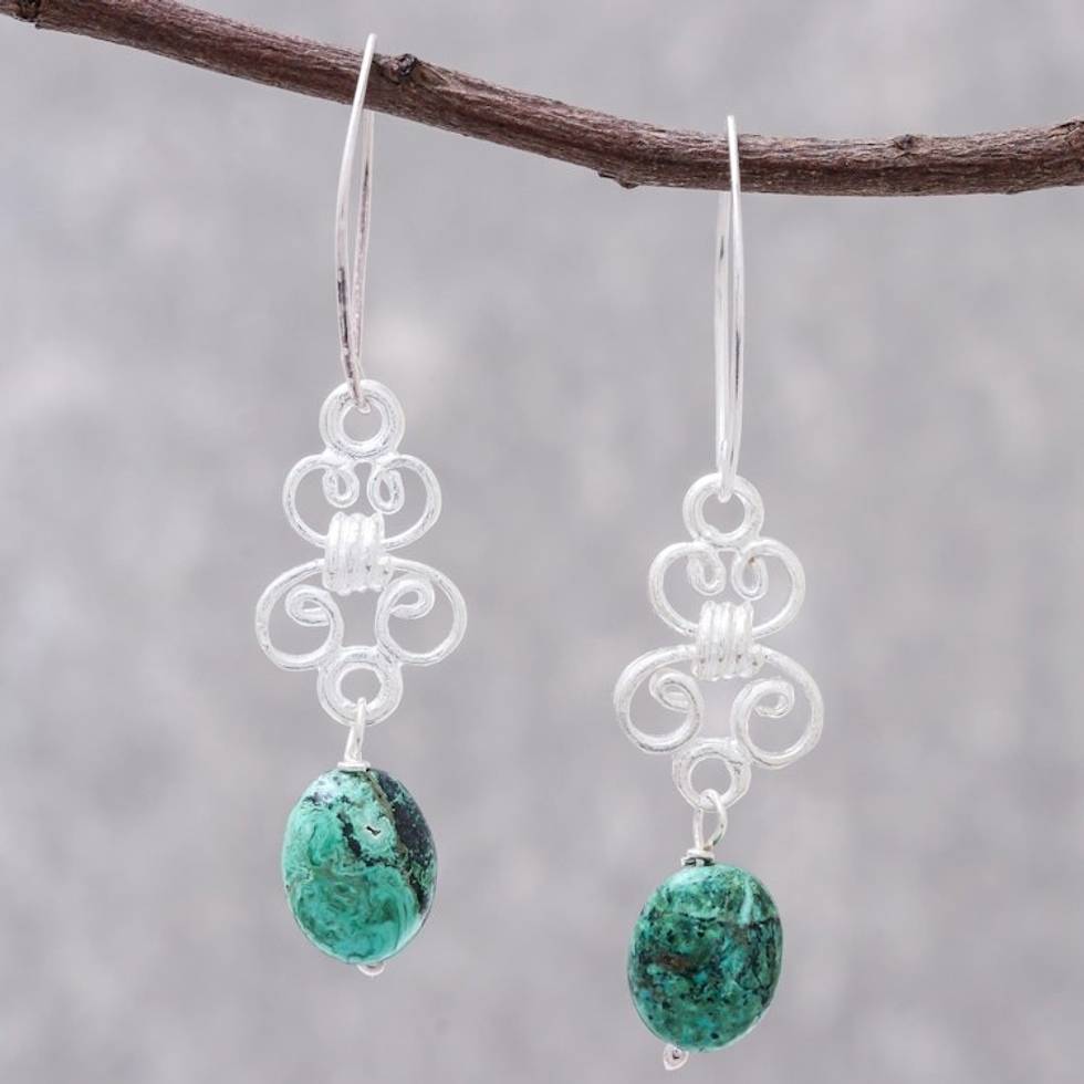 Elegant Malachite Dangle Earrings from Thailand 'Enchanted Wind' Item ID: 2671798491