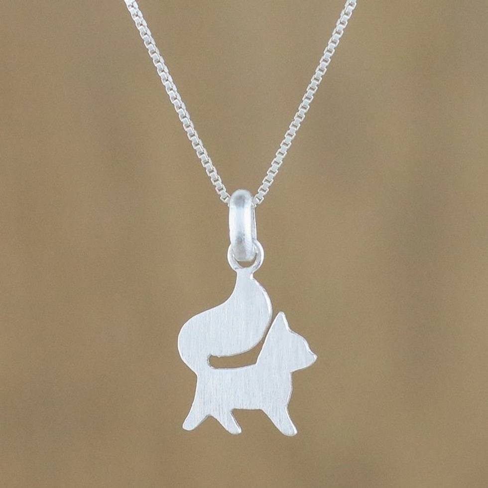 Elegant Sterling Silver Dog Pendant Necklace from Thailand 'Puppy Poise' Item ID: 2671798888