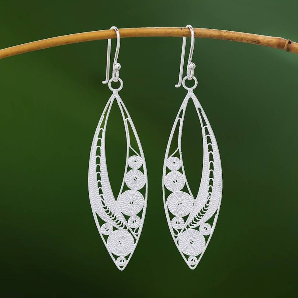 Elegant Sterling Silver Filigree Dangle Earrings 'Virtuosity' Item ID: 2669926449