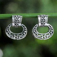 Elegant Sterling Silver Oval Dangle Earrings from Thailand 'Ornate Chiang Mai' Item ID: 2671800641