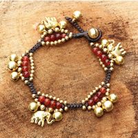 Elephant and Bell Charm Bracelet in Carnelian and Brass 'Fortune's Melody' Item ID: 2671803049