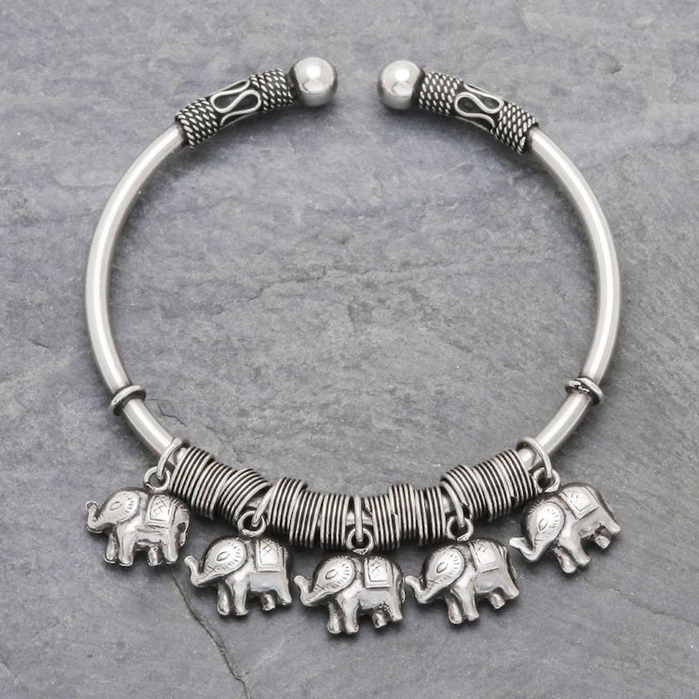 Elephant Charm Cuff Crafted in Sterling Silver 'Parade of Pachyderms' Item ID: 2671640998