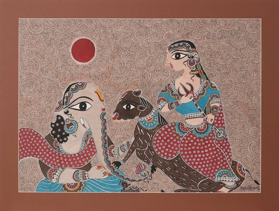Elephant Deity Madhubani Style Painting from India 'Parvati Ganesha Saga' Item ID: 2669890093