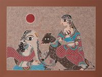 Bharti has dedicated her life to the preservation of Madhubani painting. She is viewed as an authority in the field and has trained dozens of aspiring artists in this ancient style, many of whom are now able to earn a living through the practice of this art. In her own paintings, Bharti brings a contemporary intellectual edge to this ancient Indian folk art. She has received numerous awards for her paintings but the one she treasures most is the National Award for Excellence in Handicrafts, also known as the President's Award - it was her long-held dream to receive it.
