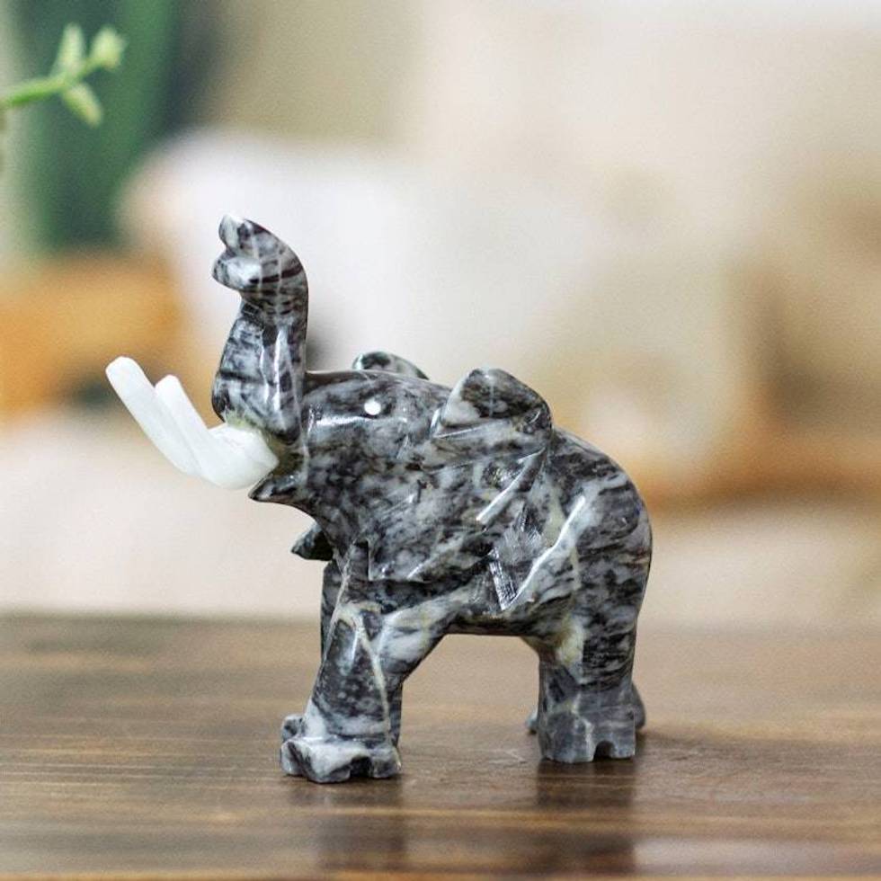 Elephant Marble Sculpture in Grey Hue Hand-Carved in Mexico 'Charcoal Trunk Charm' Item ID: 2676647122