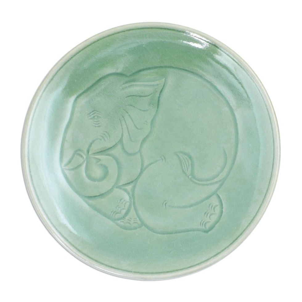 Elephant Motif Handcrafted Thai Celadon Ceramic Dinner Plate 'Sleeping Elephant' Item ID: 2671798377