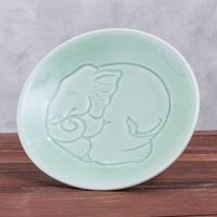 Elephant Motif Handcrafted Thai Celadon Ceramic Salad Plate 'Sleeping Elephant' Item ID: 2671640822