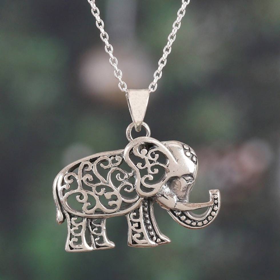 Elephant-Shaped Sterling Silver Pendant Necklace from India 'Fortunate Soul' Item ID: 2671786714