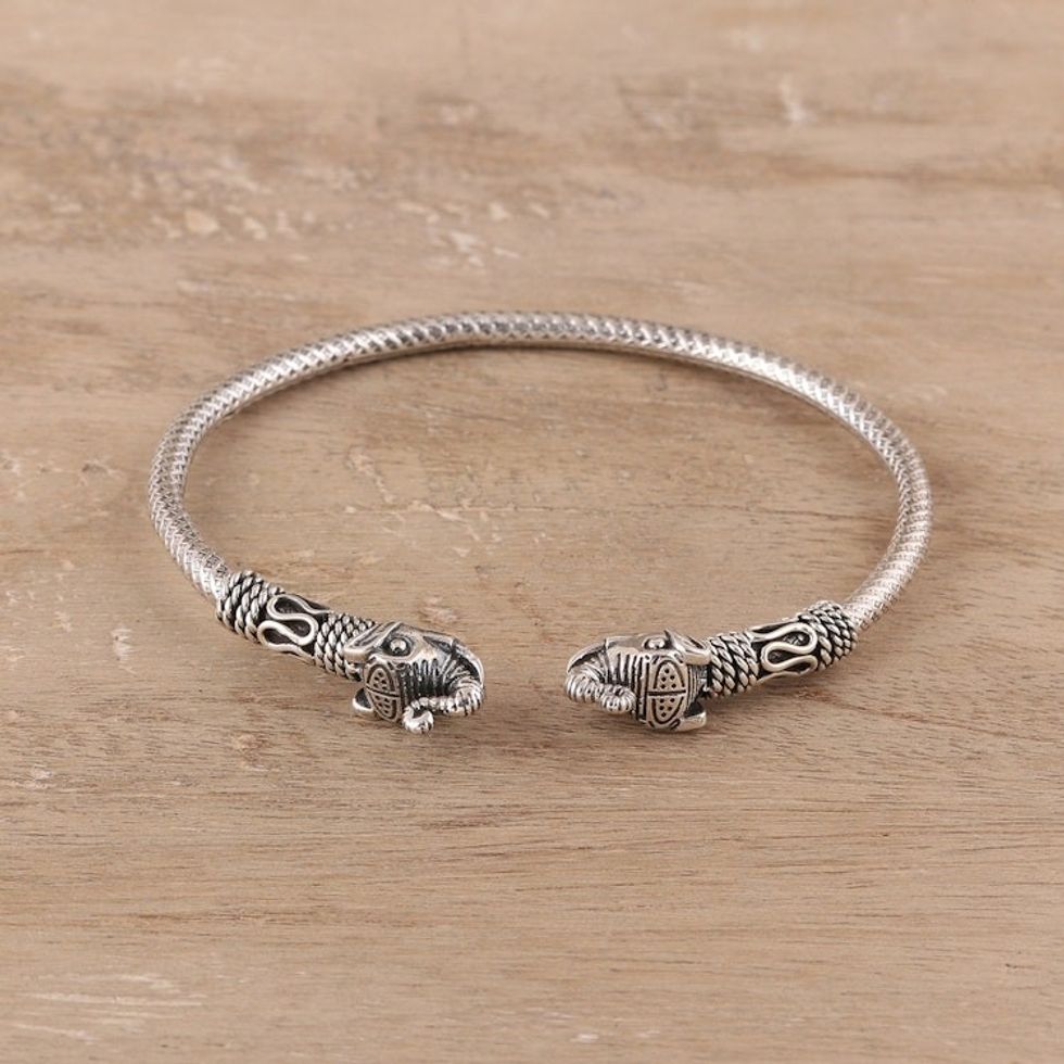 Elephant Sterling Silver Cuff Bracelet from India 'Welcome Elephant' Item ID: 2671792024