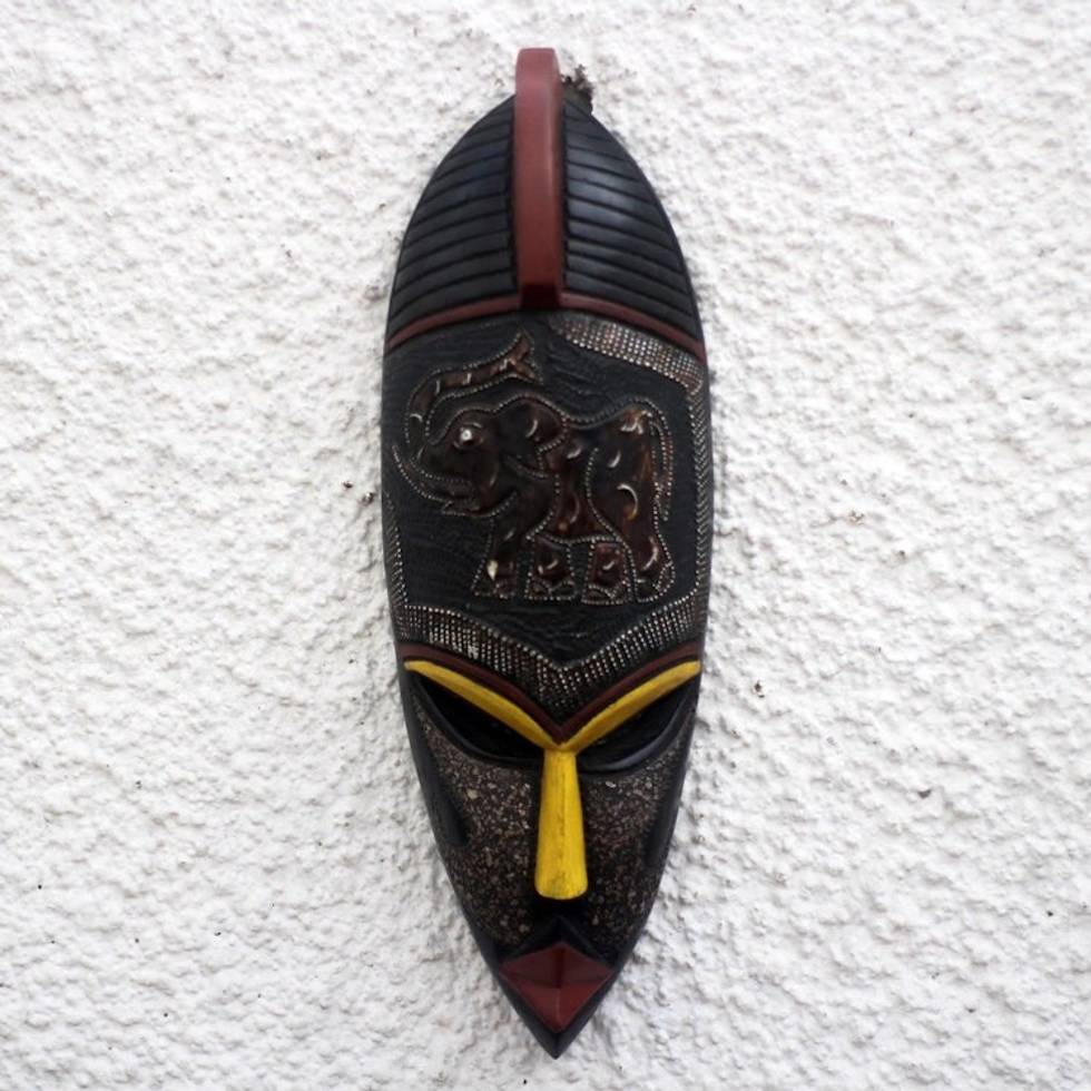 Elephant Themed African Sese Wood and Aluminum Mask 'Asomdwe Elephant' Item ID: 2671805751