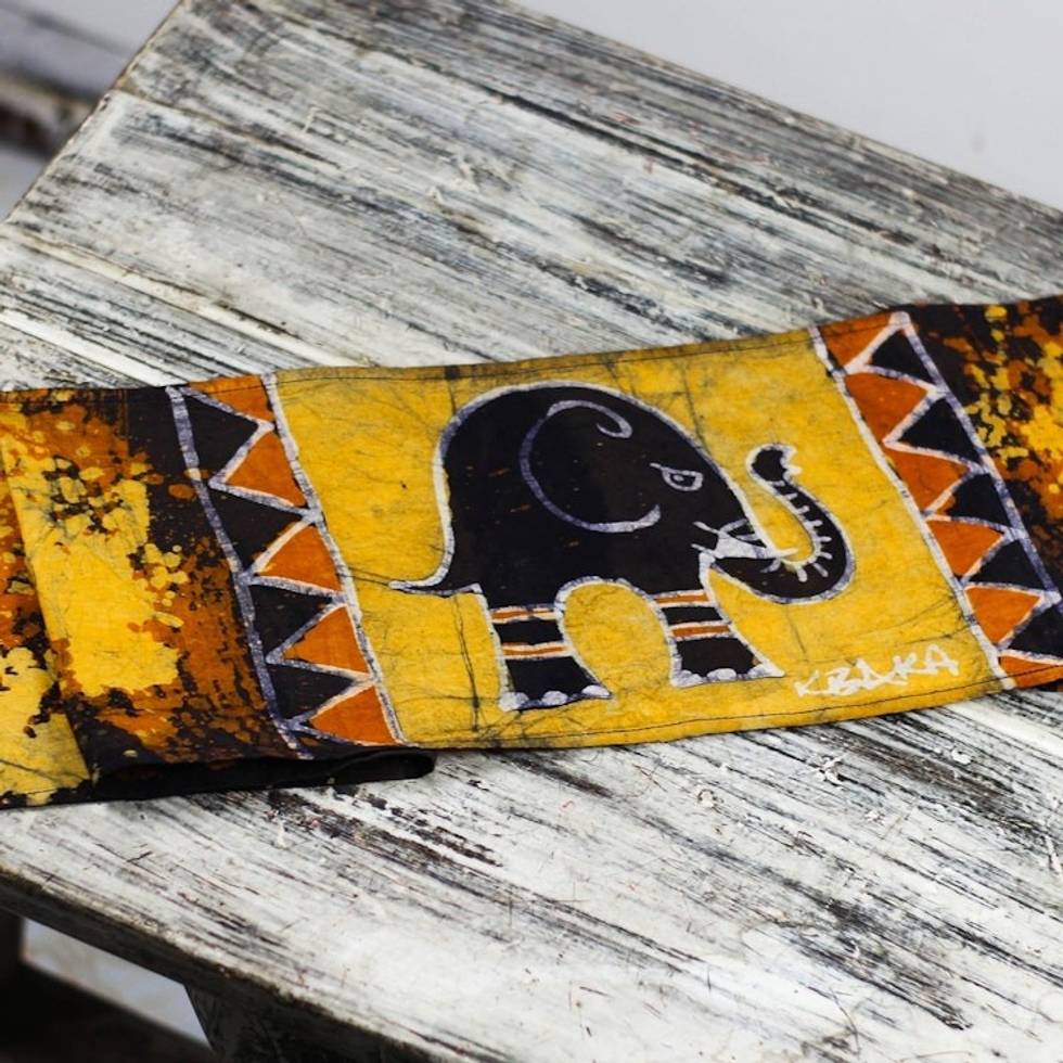 Elephant-Themed Batik Cotton Table Runner from Ghana 'Daffodil Elephant' Item ID: 2671805741