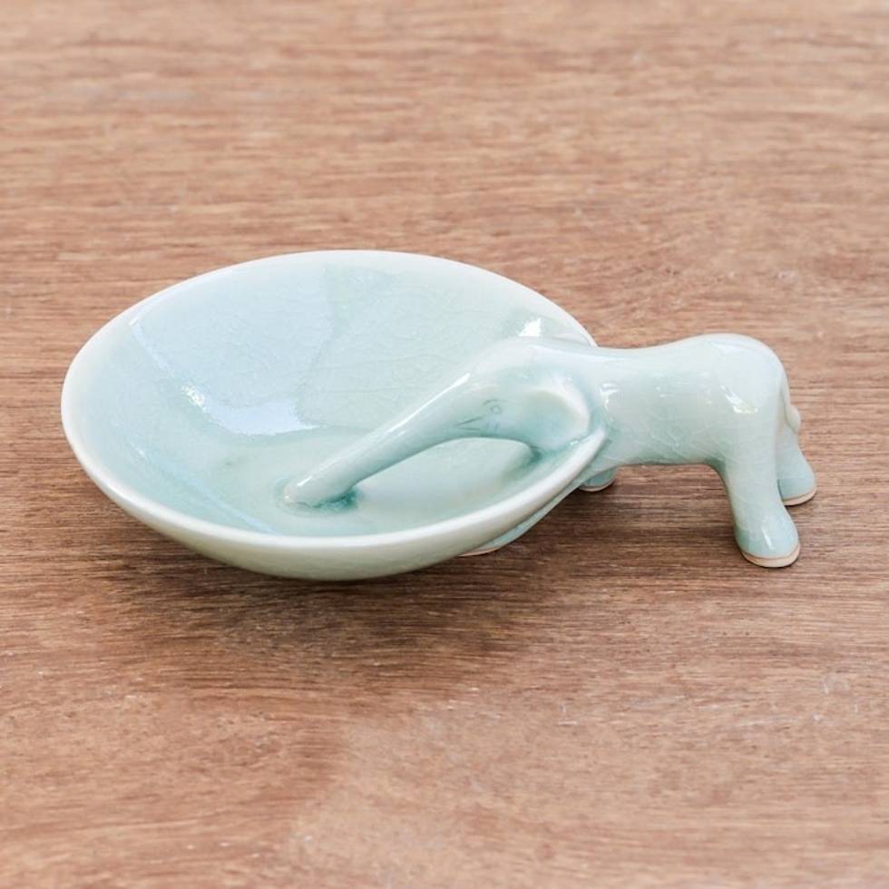 Elephant-Themed Celadon Ceramic Incense Holder 'Sipping Elephant' Item ID: 2671798692