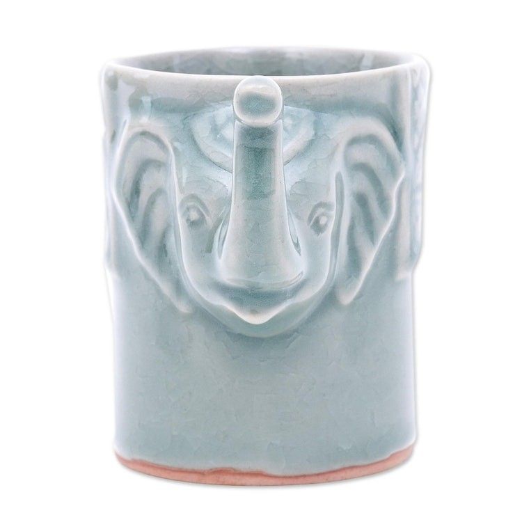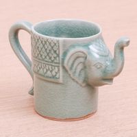Elephant Themed Celadon Ceramic Mug in Blue-Green 'Elephant Essence in Spruce' Item ID: 2671799947