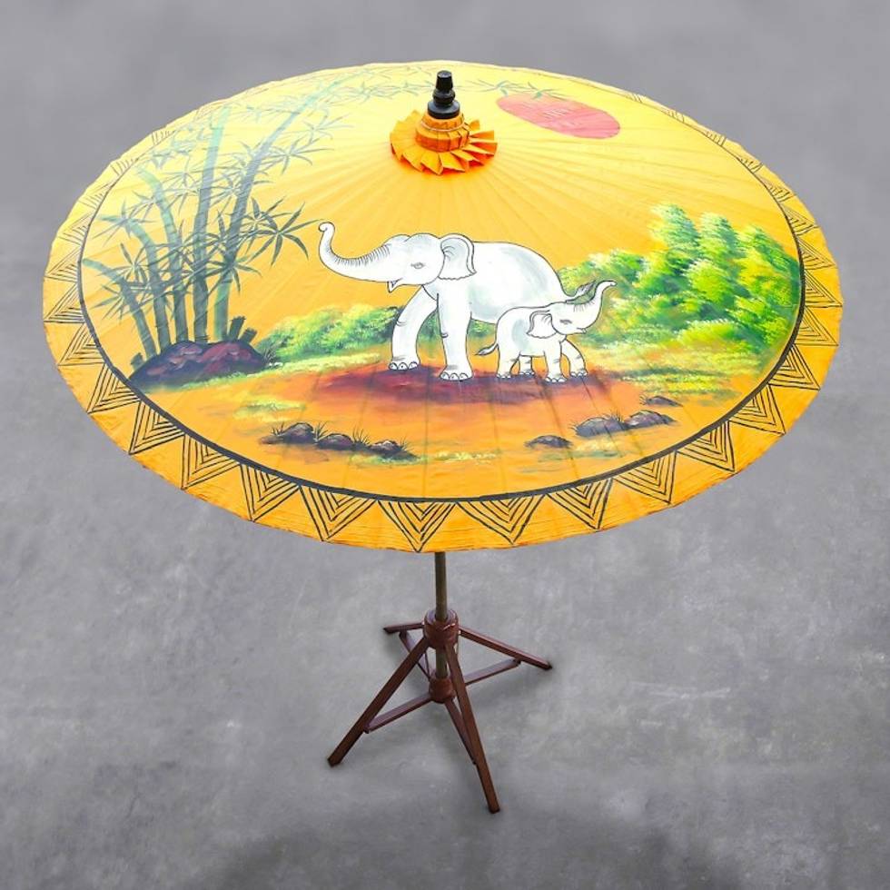 Elephant-Themed Cotton and Bamboo Parasol in Goldenrod 'Joyful Dance' Item ID: 2671798443