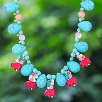 Elephant-Themed Multi-Gemstone Beaded Charm Necklace 'Joyful in Blue' Item ID: 2671797809