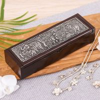 Elephant-Themed Rubberwood and Embossed Aluminum Jewelry Box 'Elephant Reign' Item ID: 2671796931