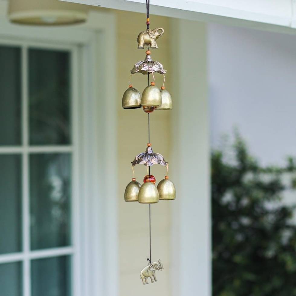 Elephant Themed Wind Chime Made from Aluminum and Brass 'Wisdom Bells' Item ID: 2669897646