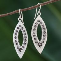 Elliptical Sterling Silver Dangle Earrings from Thailand 'Flower Eyes' Item ID: 2671801095