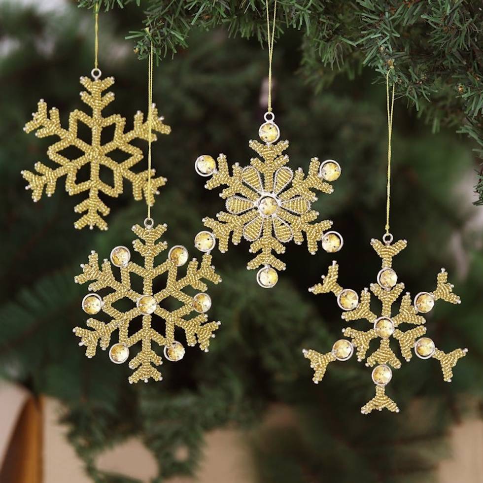 Embellished Aluminum Snowflake Ornaments Set of 4 'Glittering Snowfall' Item ID: 2669924337