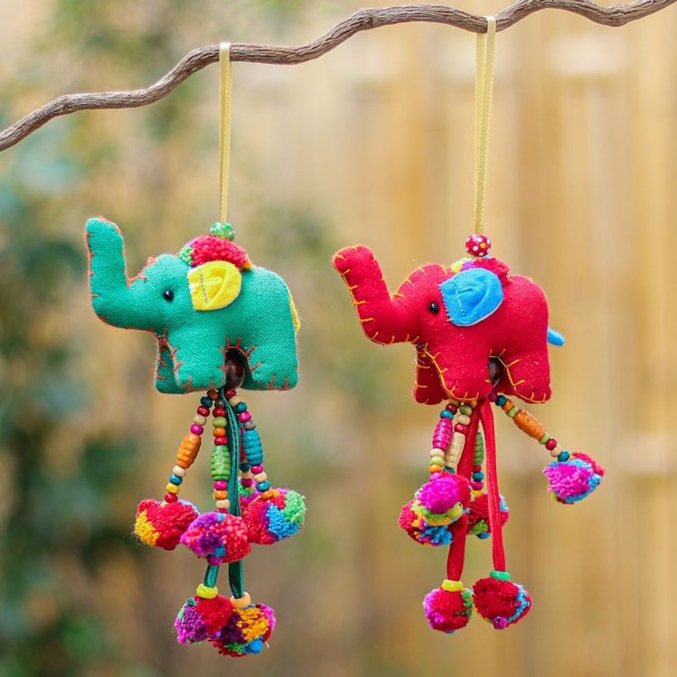 Embellished Elephant Ornaments Pair 'Festive Pachyderms' Item ID: 2669897483