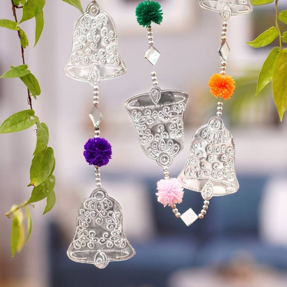 Embossed Aluminum Bell Garland with Glass Diamonds from Bali 'Celebration Rhythm' Item ID: 2671763078