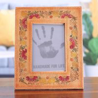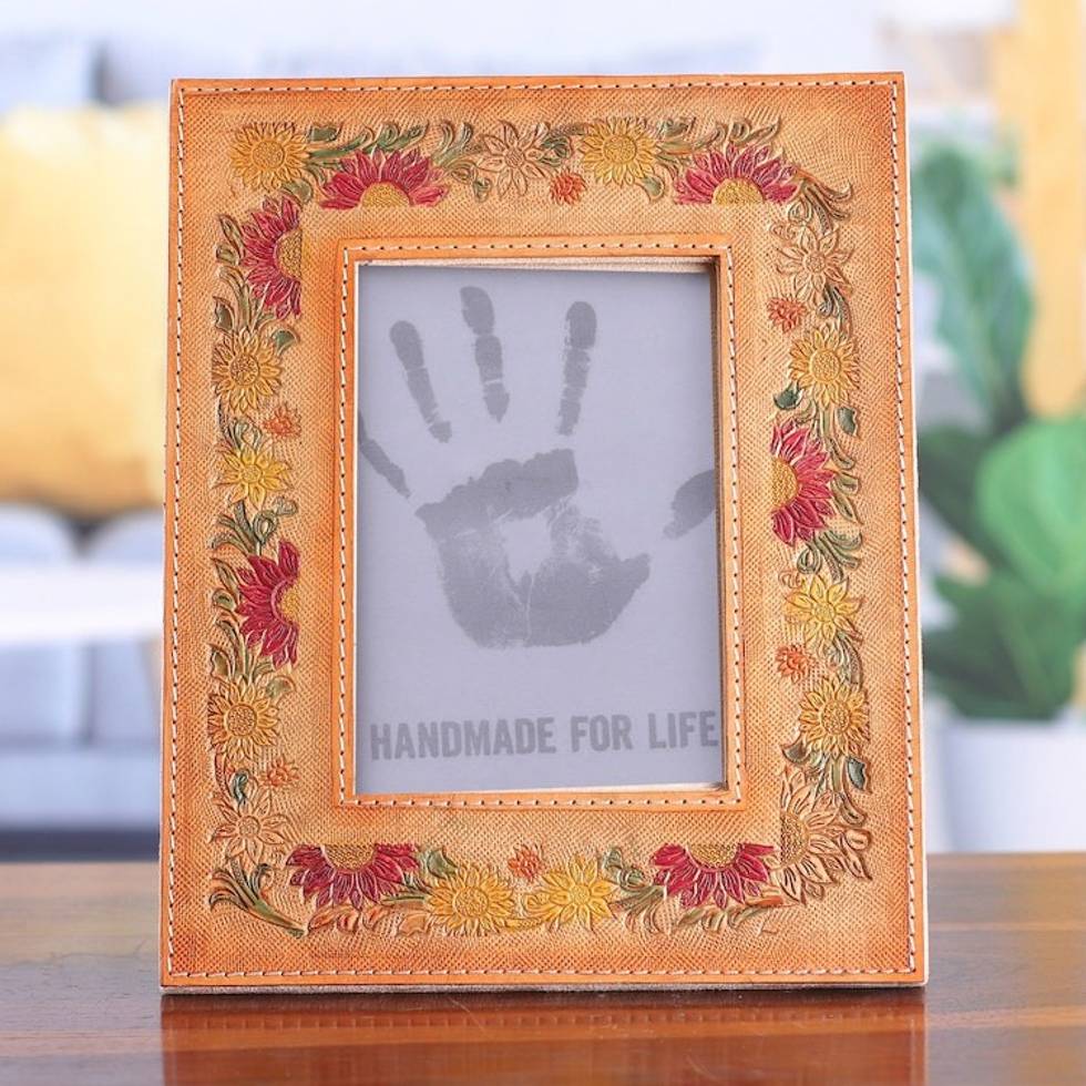 Embossed Floral Crimson and Orange Leather Photo Frame 4x6 'Floral Memory' Item ID: 2671781323