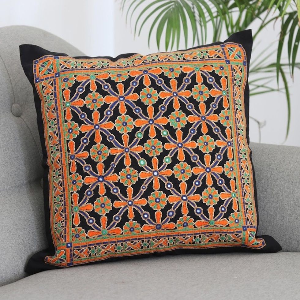 Embroidered Cotton Cushion Cover with Floral Motif 'Palace Maze' Item ID: 2671788700