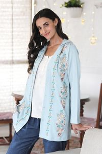 Embroidered Cotton Floral-Motif Hoodie 'Pale Paradise' Item ID: 2669924570