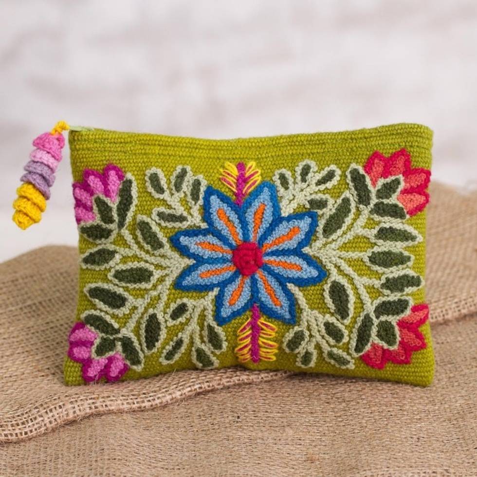 Embroidered Floral Alpaca Clutch in Warm Olive from Peru 'Floral Flourish' Item ID: 2671691282