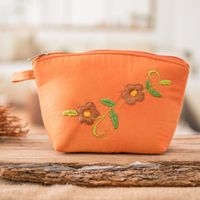 Embroidered Floral Orange Cotton Cosmetic Bag with Zipper 'Evening Beauty' Item ID: 2671771433