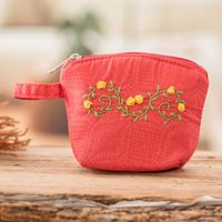 Embroidered Floral Poppy Cotton Coin Purse with Zipper 'Poppy Beauty' Item ID: 2671771046