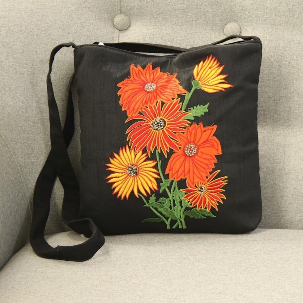 Embroidered Floral Sling Handbag from India 'Vibrant Blossom' Item ID: 2669923842