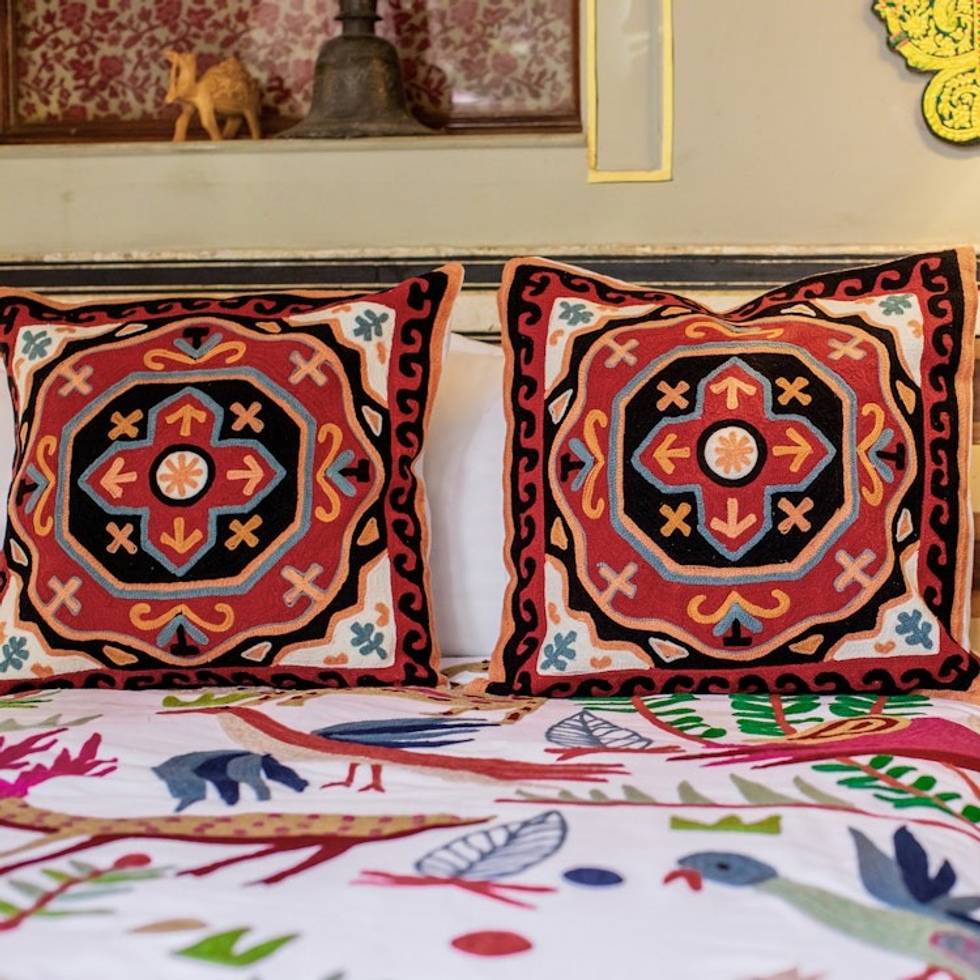 Amit Moza handcrafted decor accents with aari chain stitch embroidery