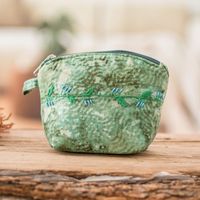 Embroidered Leafy Green Cotton Coin Purse with Zipper 'Forest Scenes' Item ID: 2671770336