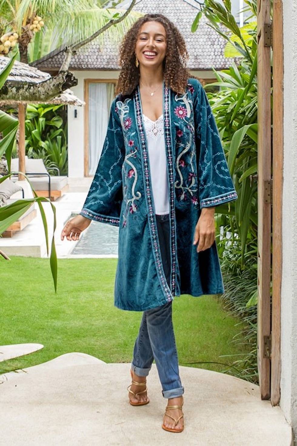 The kimono is well made & the embroidery is well done . The only problem is that it is not a teal color as shown in the picture. It is more of a light turquoise. That is why I rated it a 4 star