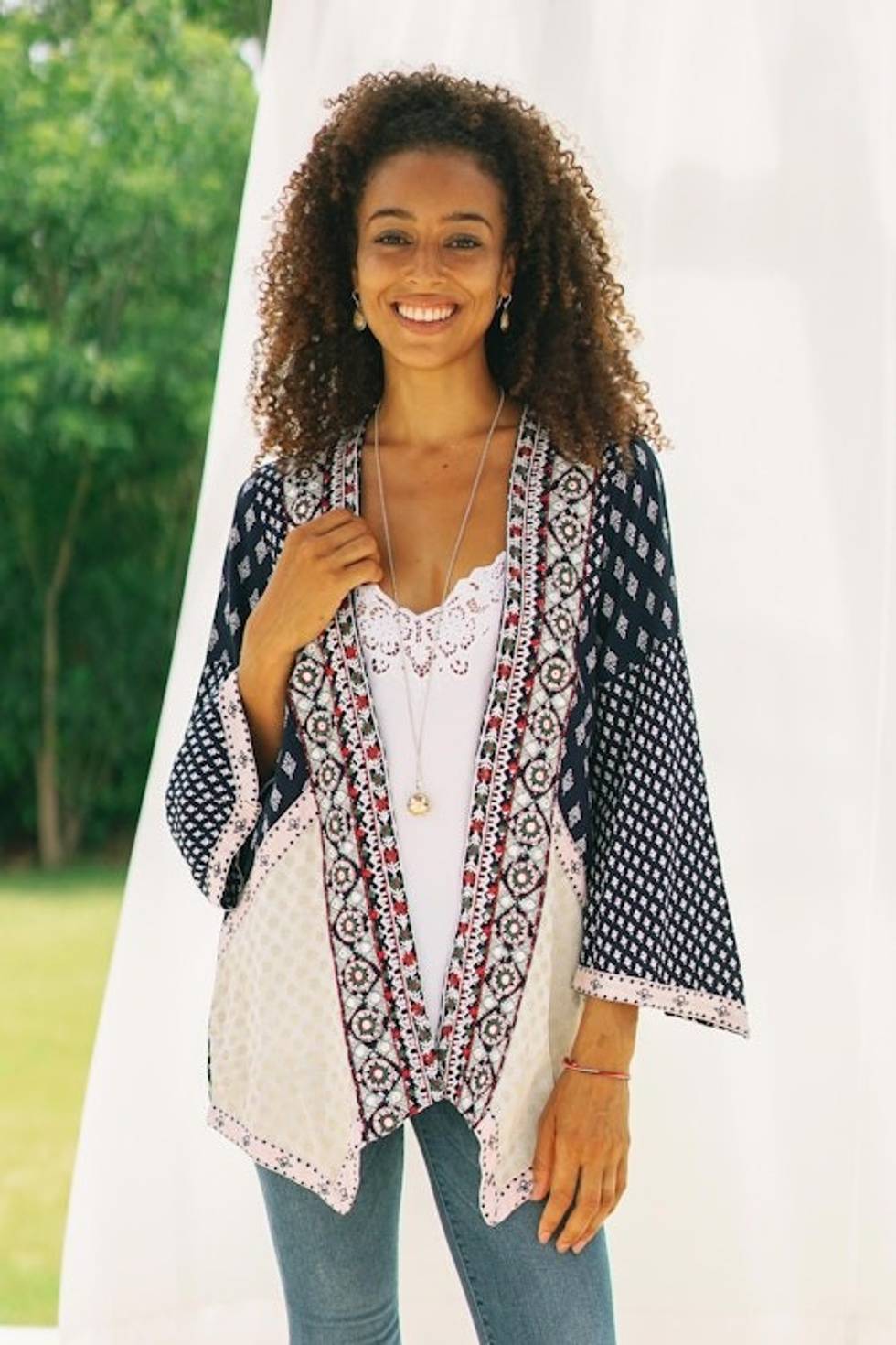 Embroidered Open Jacket in Midnight Blue 'Boho Beauty' Item ID: 2671210700