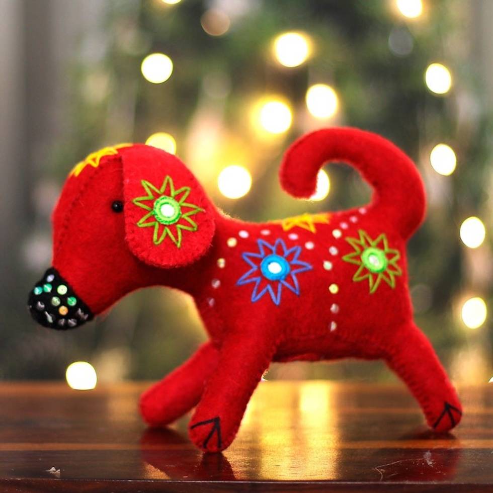 Embroidered Red Puppy Wool Felt Tree Topper with Sequins 'Christmas' Puppy' Item ID: 2671781741