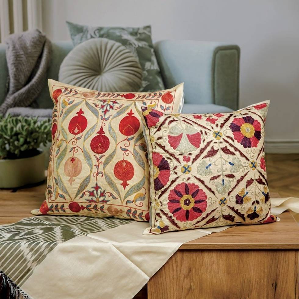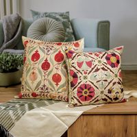Embroidered Silk Blend Cushion Cover with Pomegranate Motifs 'Pomegranate Fortunes' Item ID: 2669934758